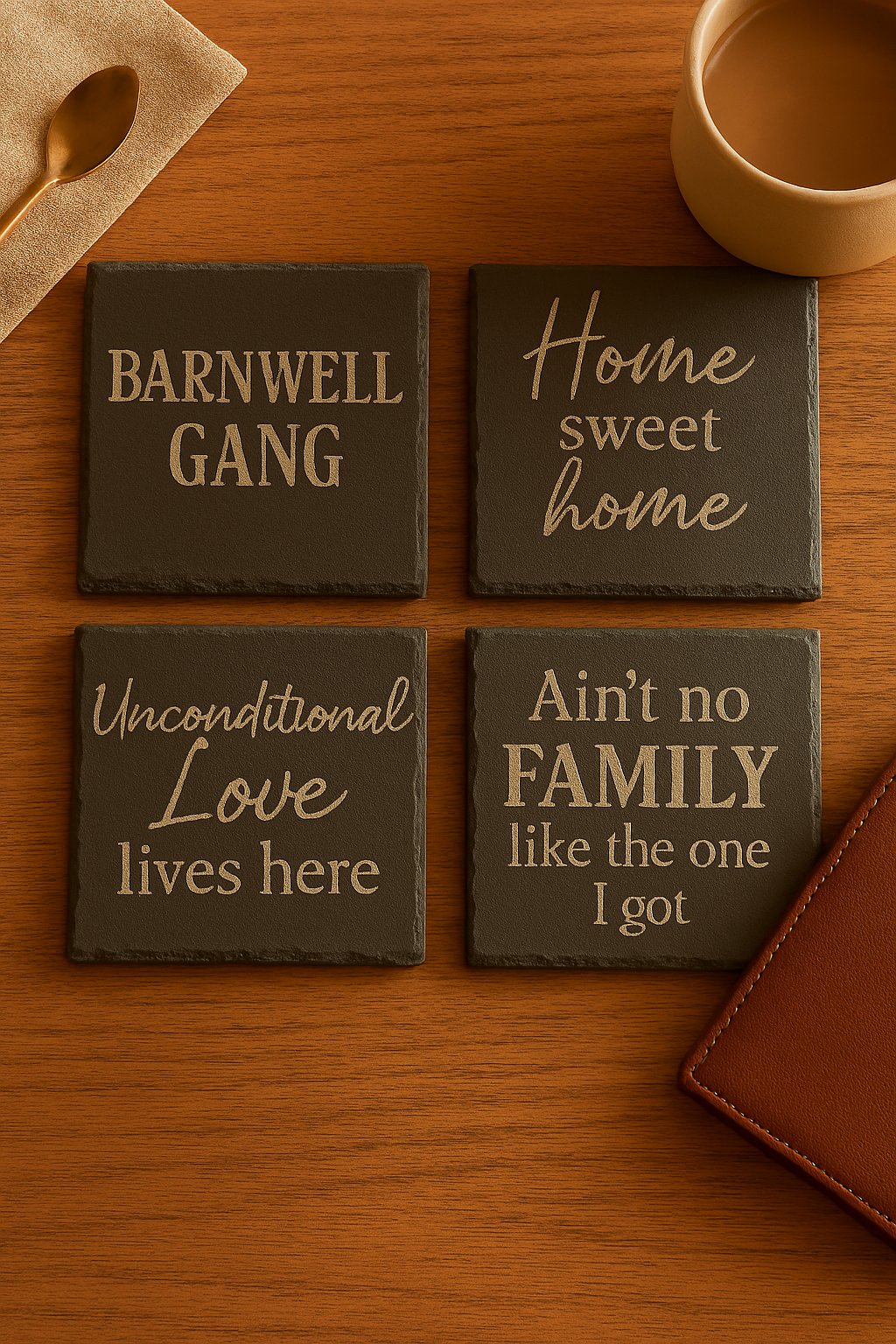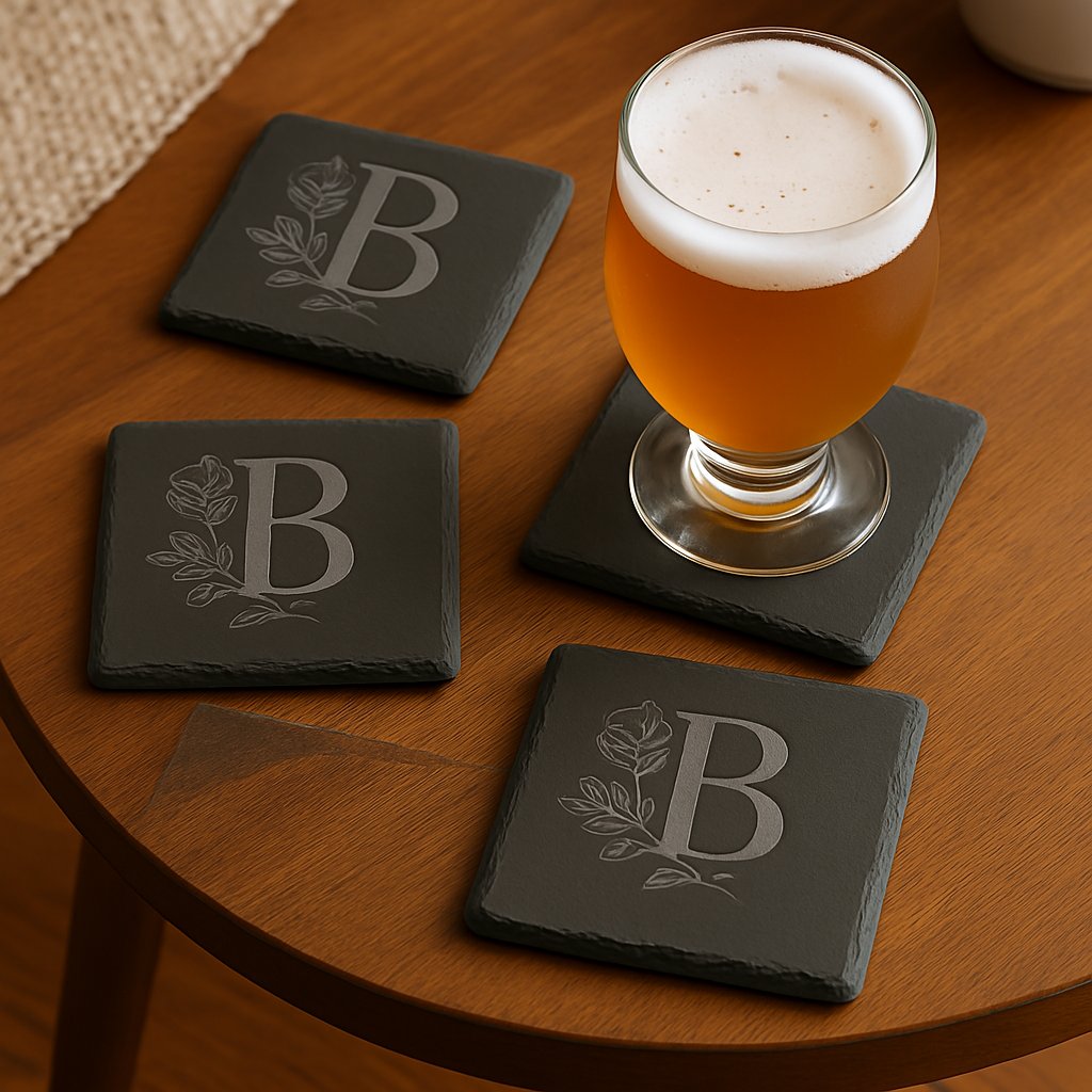 Bold, timeless engraved slate coasters—perfect for home, gifts, or faith-filled keepsakes.